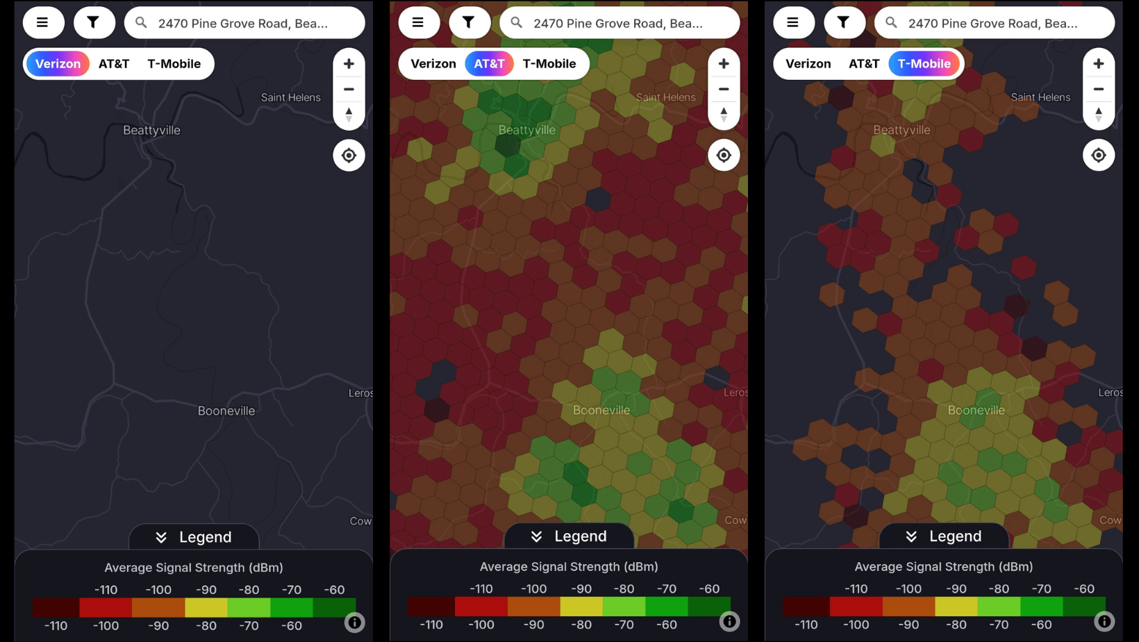 πΆ Other Cell Service Quality: AT&T showed the best ocverage throughout the area.