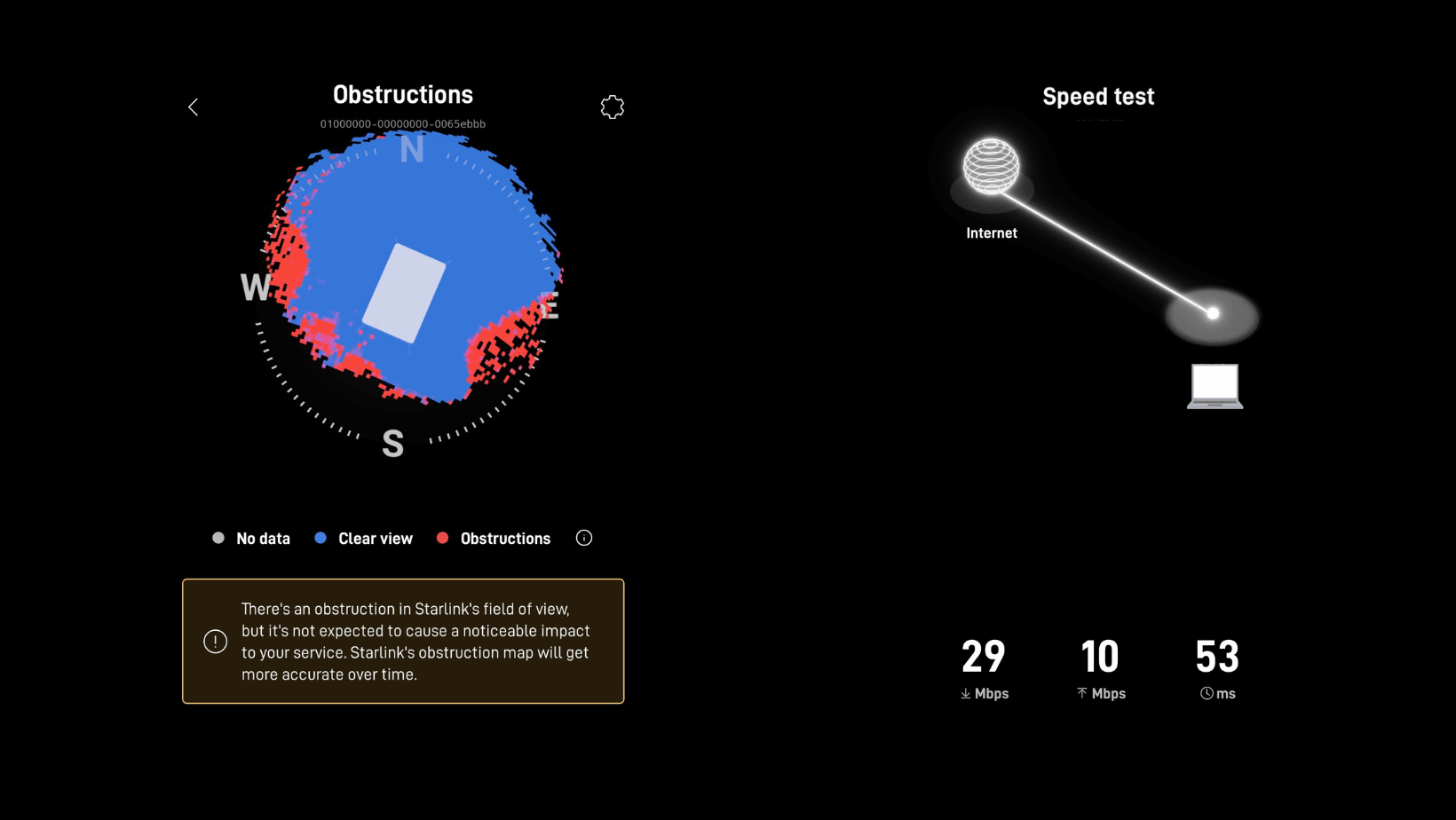 🛰️ Starlink Accessibility: Our NE access was mostly clear with minimal obstructions due to surrounding trees.