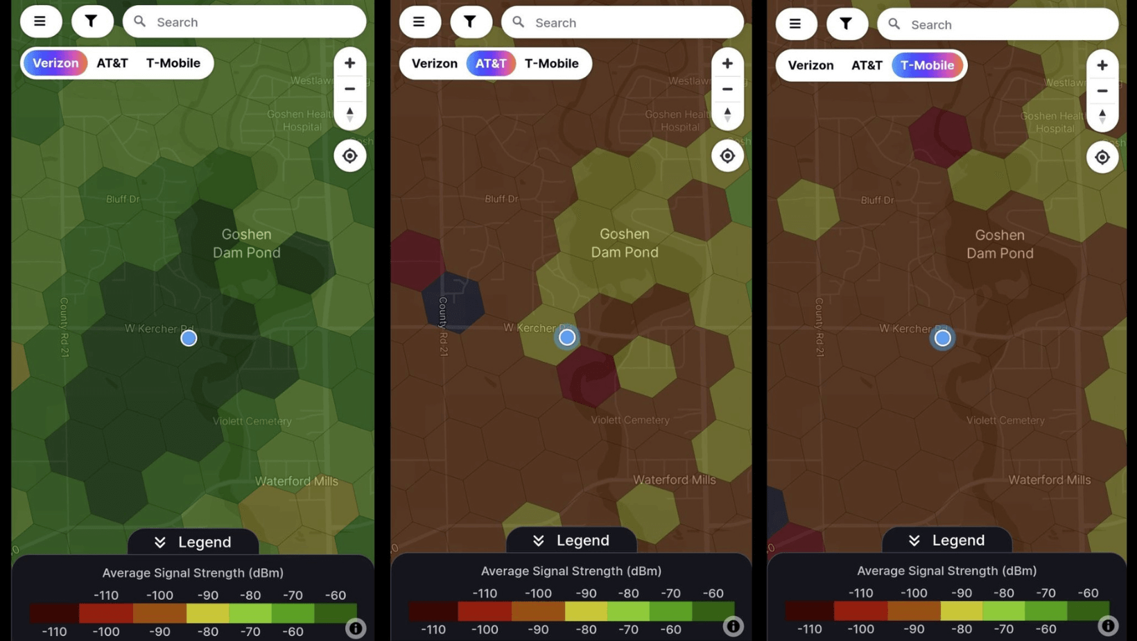 📶 Other Cell Service Quality: Overall, all three major carriers showed coverage throughout the area. Verizon appears to have the best signal.