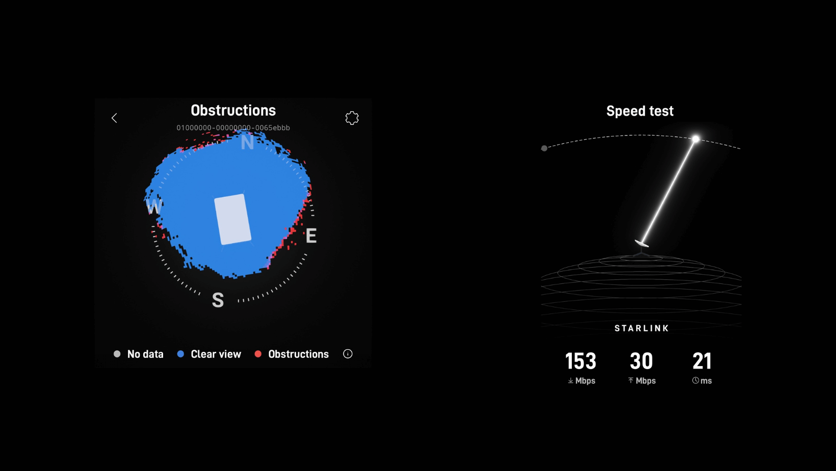 Source: Starlink App Speed test and Obstruction Reports