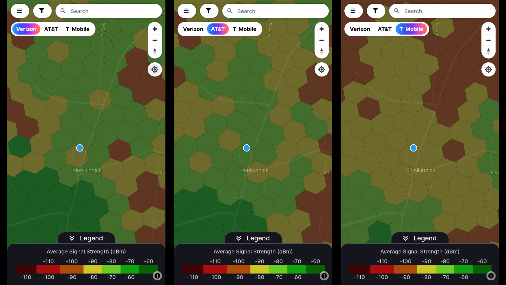 πΆ Other Cell Service Quality: Overall, all three major carriers showed good coverage throughout the area. Verizon and AT&T appear to have the best signals.