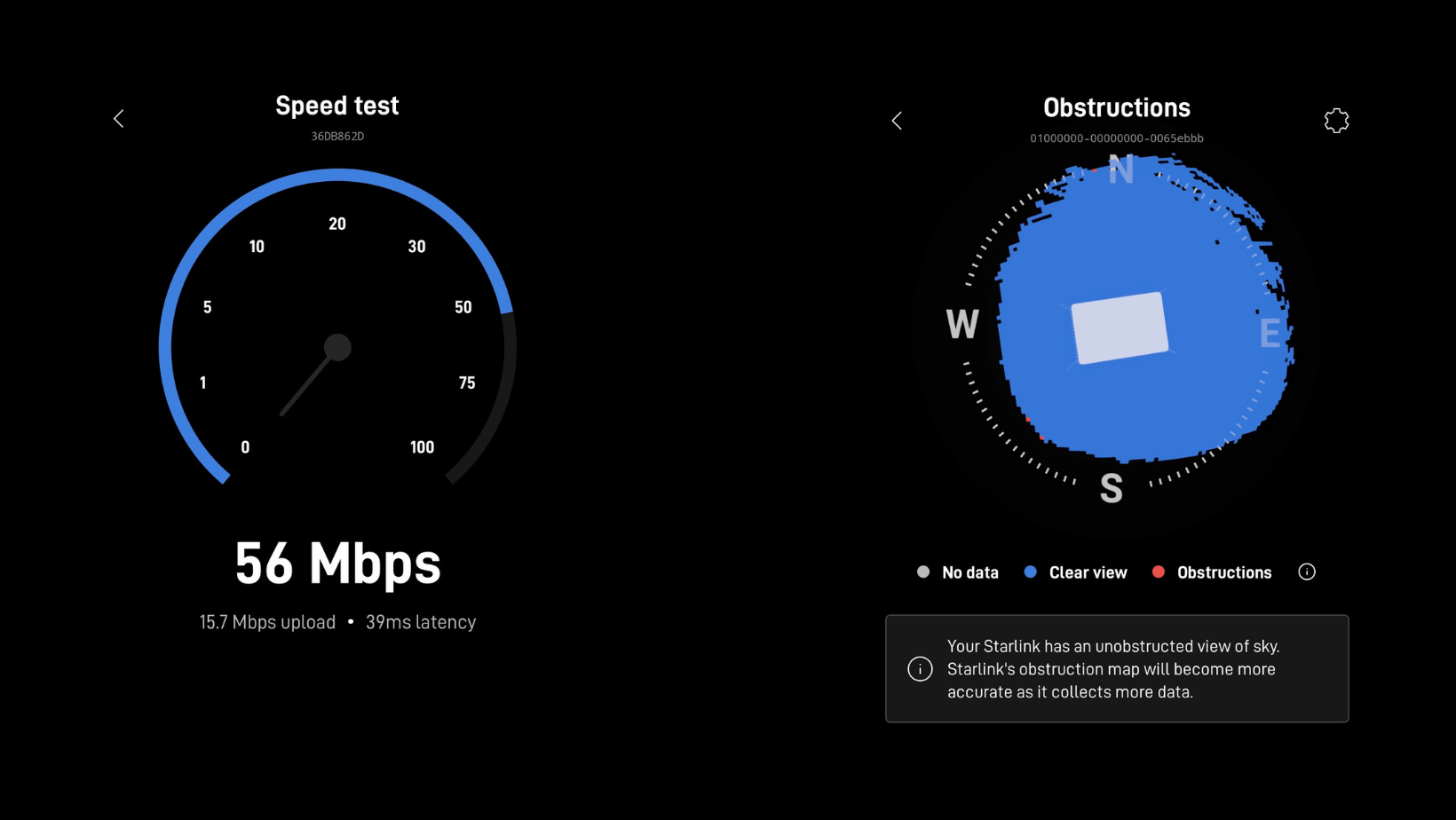 Source: Starlink App Speed test and Obstruction Reports