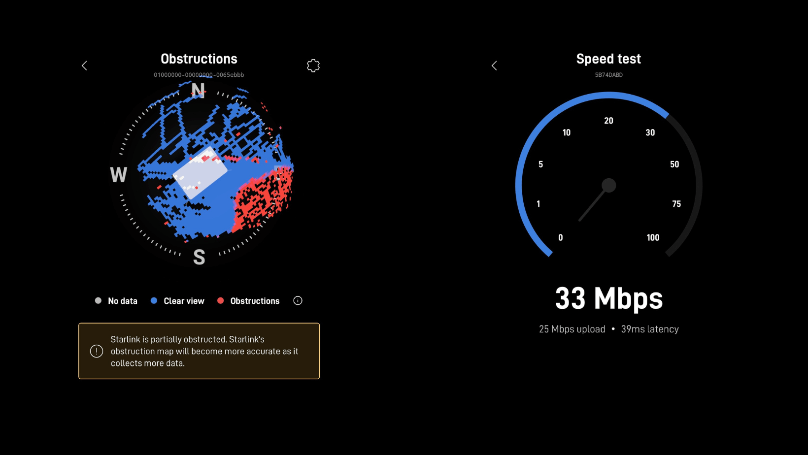 Source: Starlink App Speed test and Obstruction Reports