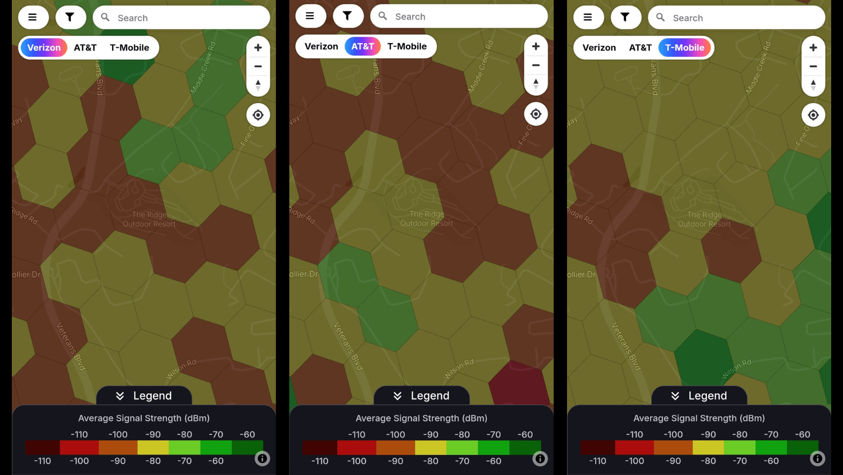 📶 Other Cell Service Quality: All three carriers had average signal strength and performance.