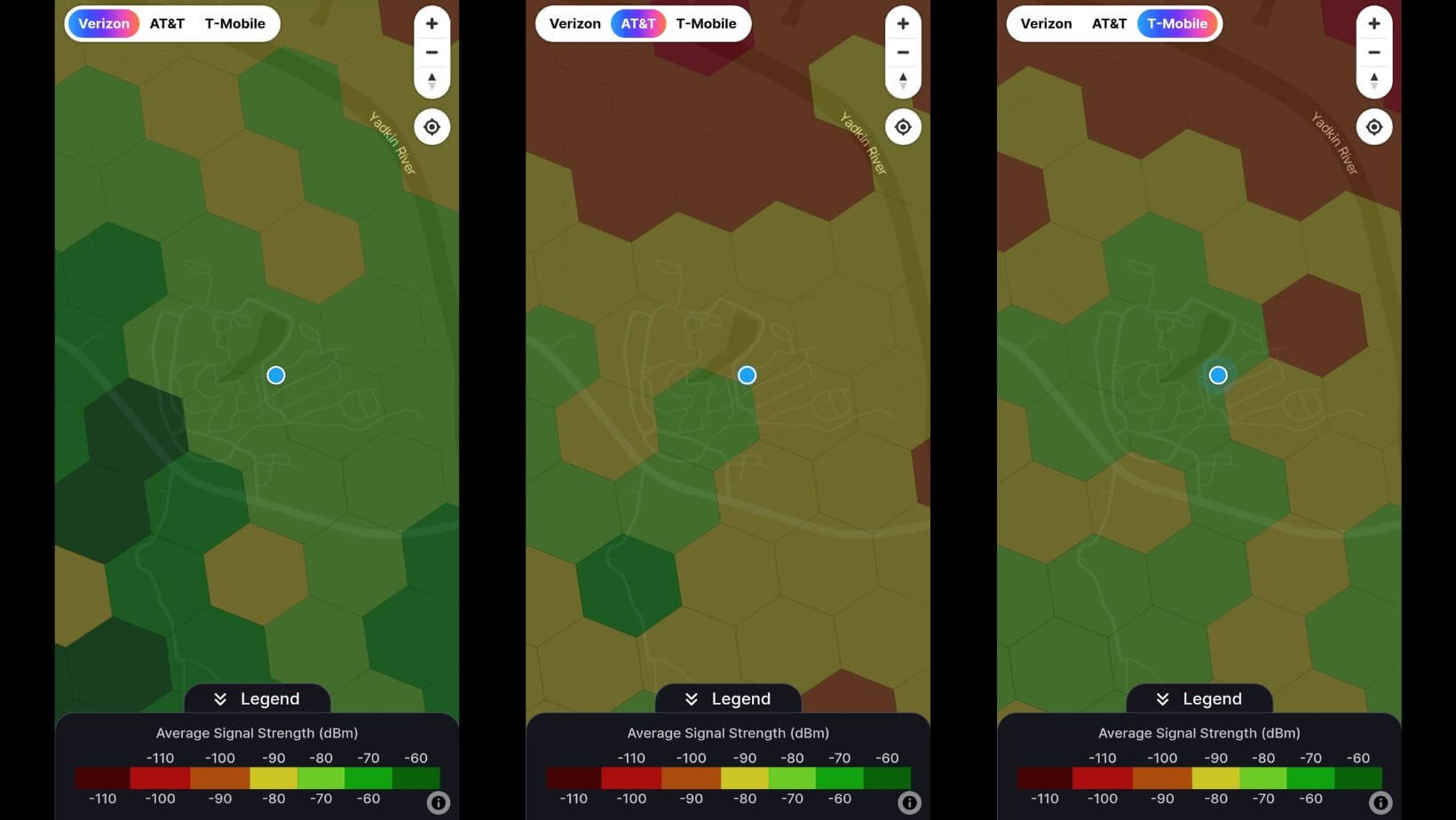 📶 Other Cell Service Quality: Overall, all three major carriers showed good coverage throughout the area.