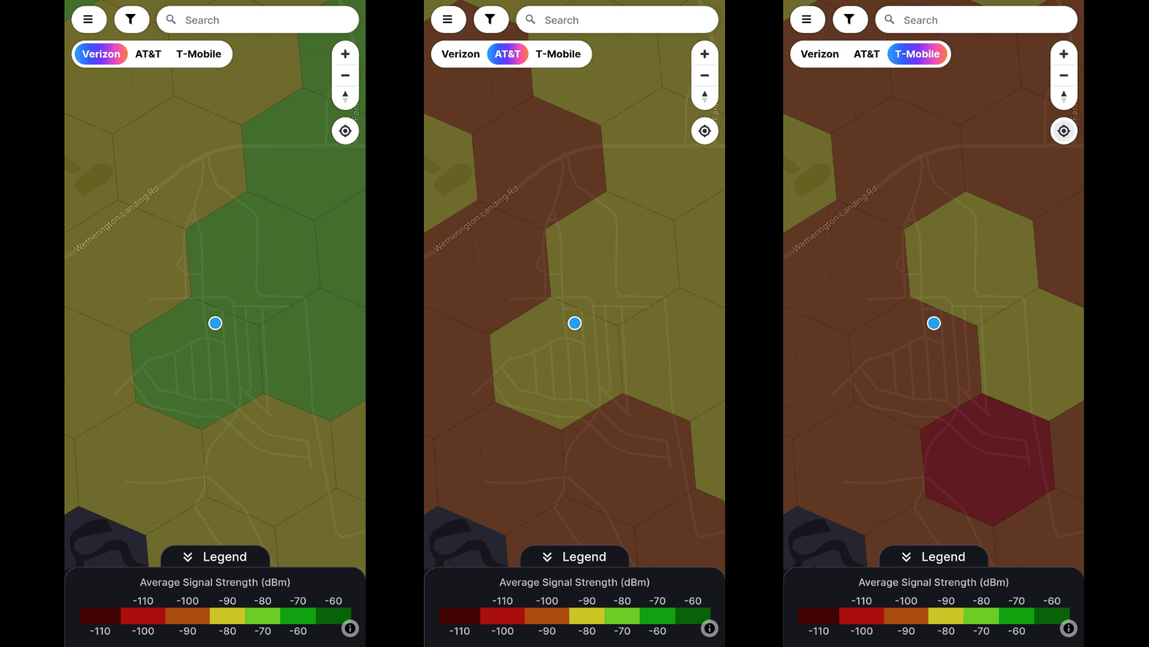 πΆ Other Cell Service Quality: Overall, all three major carriers showed coverage throughout the area. Verizon appears to have the best signal.